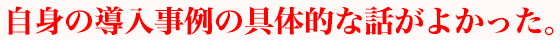 人の採用、定着は、顧問先、会計事務所の双方に必要なトピクスであり、タイムリーであった。自身の導入事例の具体的な話がよかったポイント。