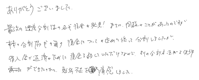 ありがとうございました。最後の遺産分割後の名義預金の発見!まさに、同様のことがあったのですが、本来の分割協議の通り預金についての定めに従って分割しましたが、借入金の返済のために預金を移していただけなので、別の分割方法を使う事ができたのかと、勉強不足を痛感しました。