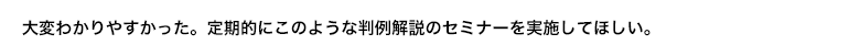 大変わかりやすかった。定期的にこのような判例解説のセミナーを実施してほしい。